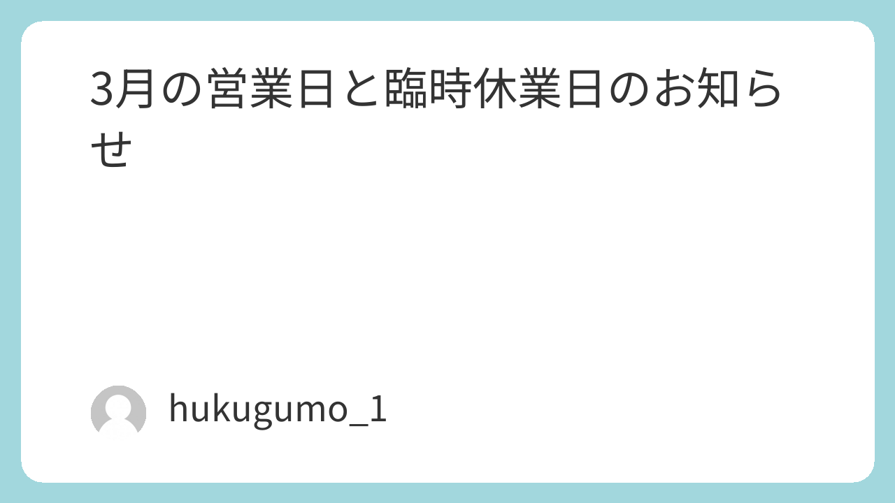 2026年3月の、祝日営業日と臨時休業のお知らせをいたします。